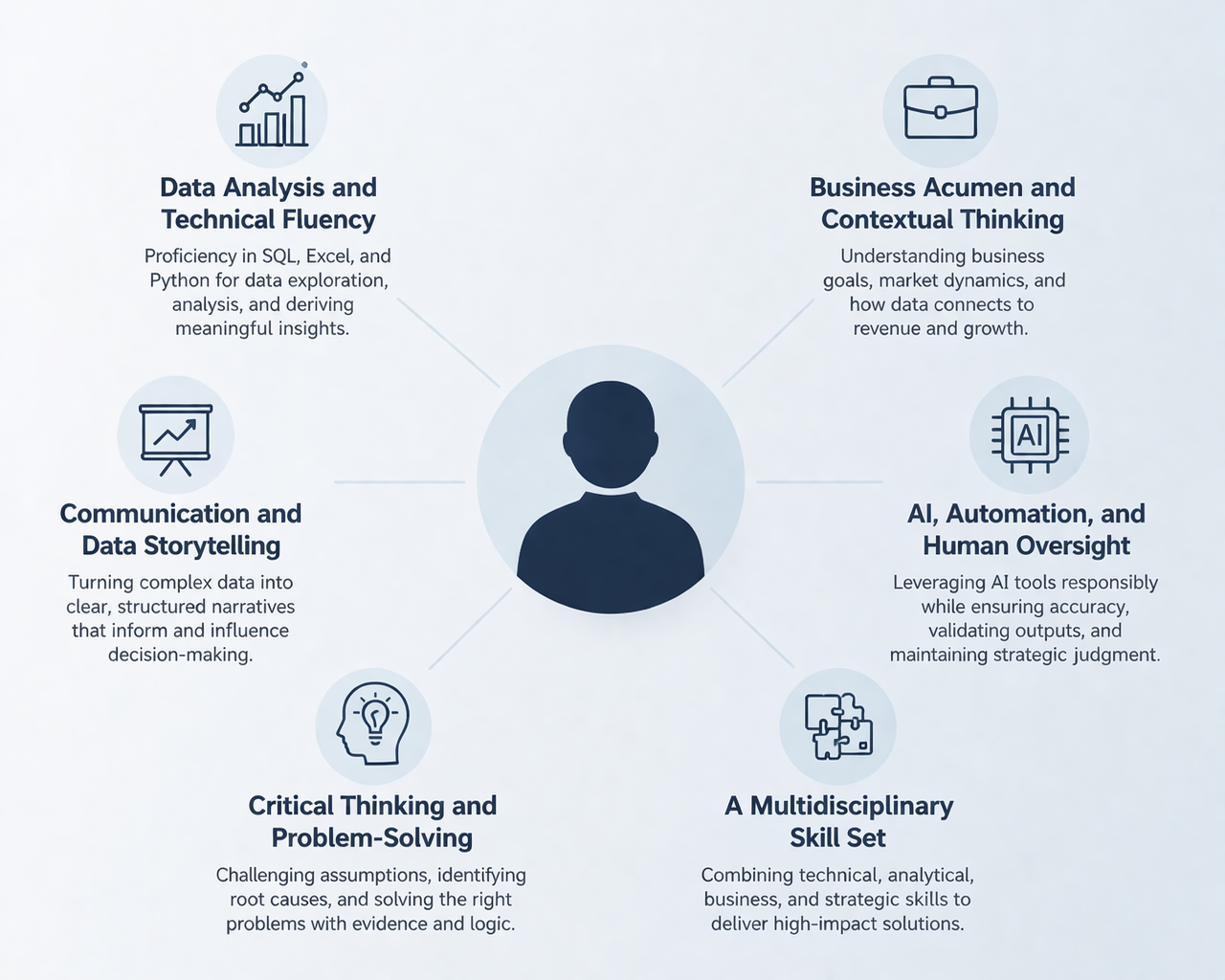 Finally, critical thinking remains one of the most valuable skills in this field. The ability to question data, challenge assumptions, and investigate root causes is what allows analysts to uncover real problems instead of surface-level symptoms. In an environment where data is abundant and tools are powerful, the true advantage comes from asking the right questions, not just finding answers.