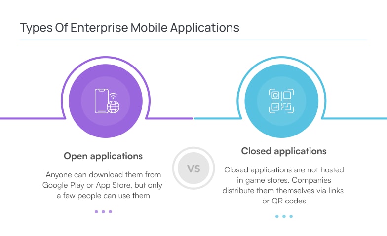 Before you start developing enterprise applications, you need to understand what type of app it will be. Generally, enterprise mobile apps are divided into two types — open and closed.