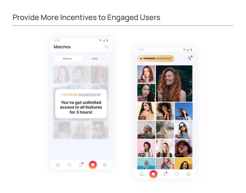 Given the nature of your dating app, you can provide several incentives. For example, if your dating app has an in-app purchase model, you can offer time-sensitive discounts. If your dating app has a subscription-based model, you can initiate usage-based rewards instead of discounts. All of these things can be used to drive more conversions.