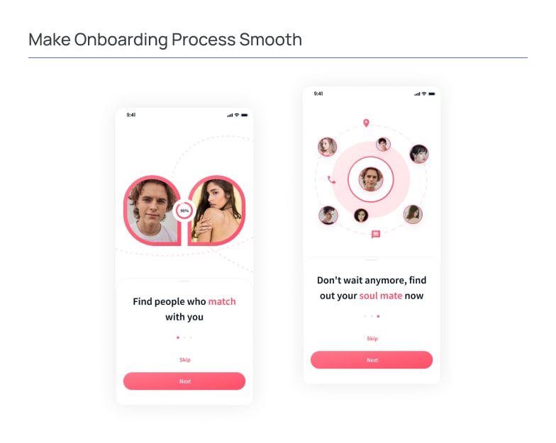 Given that the first impression is more than critical, timely and proper onboarding can increase user engagement by half. Providing an excellent user experience is effective for increasing dating app engagement. So what makes a mobile app design flawless?
