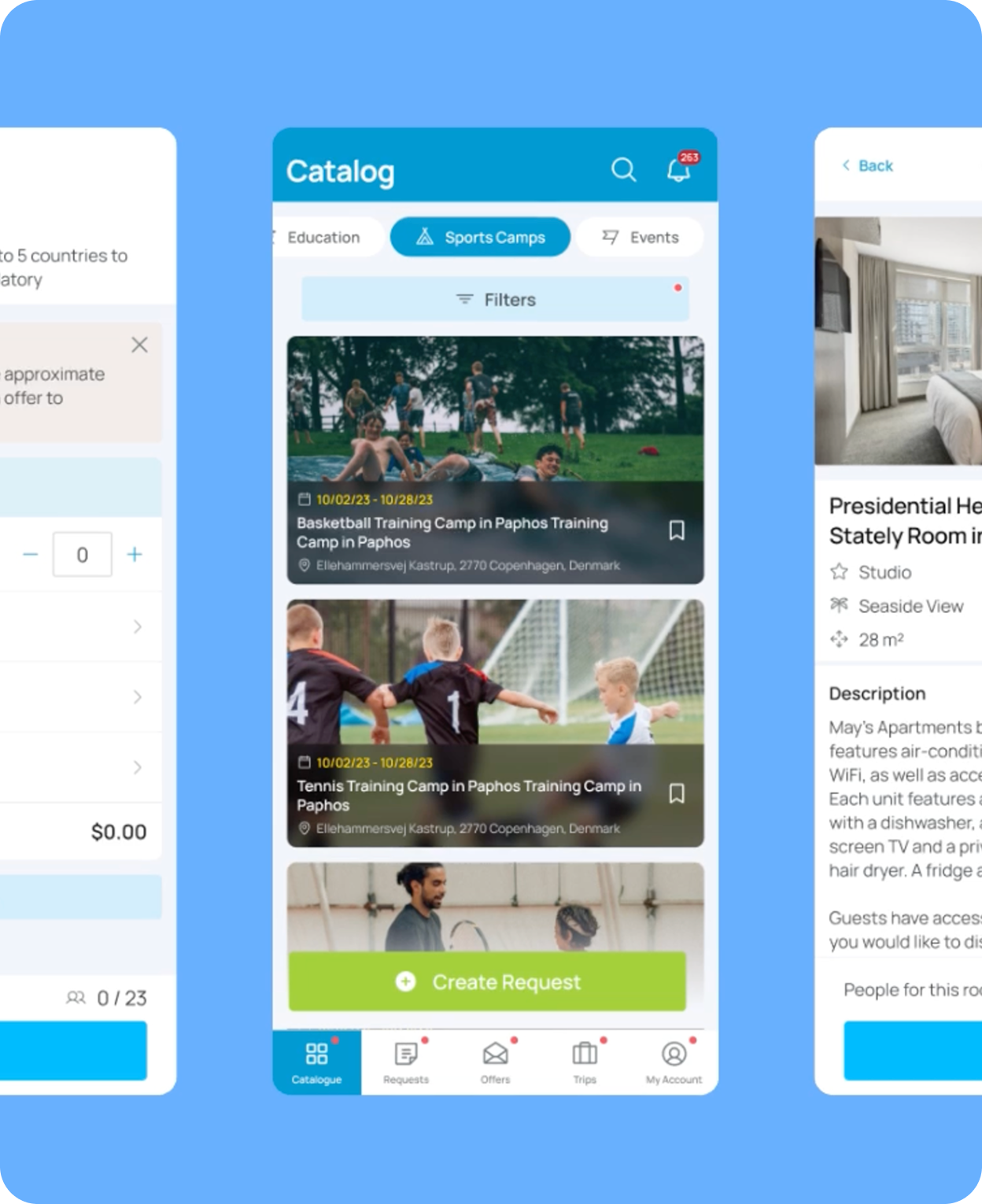 Platform linking sports teams, athletes, and service providers for global sports trip arrangements, via mobile/web. Your Ultimate Sports Travel Companion